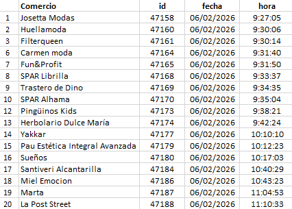 Listado de comercios admitidos en el Programa de Consultorías para Pequeño Comercio, atendiendo al orden de llegada de su solicitud a través del formulario web habilitado a tal efecto.
