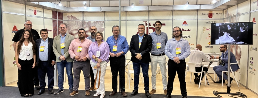 Un total de siete empresas y dos asociaciones buscan abrir o ampliar sus oportunidades comerciales en el encuentro internacional que tiene lugar esta semana. Se trata de Distinet Murcia, Frutas Torero, ITUM Grapes, Toñi Fruit, Uvas MOYCA, El Ciruelo e Hydroponic Systems, perteneciente al grupo JHuete, a las que se suman APOEXPA (Asociación de Productores – Exportadores de Frutas, Uva de Mesa y Otros Productos Agrarios) y ASOPEX (Asociación de organizaciones de productores de frutas, uva de mesa y hortalizas de la Región de Murcia).